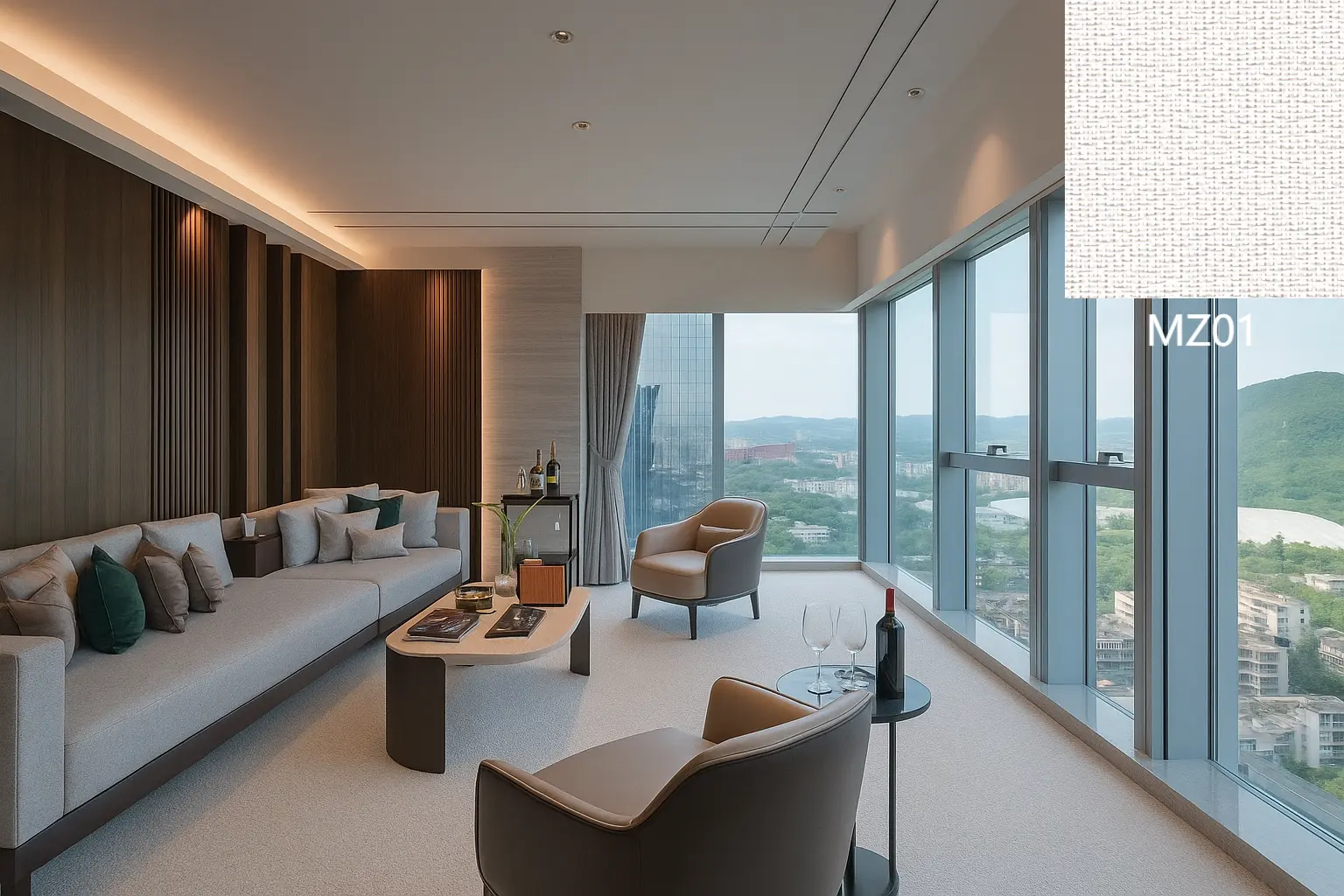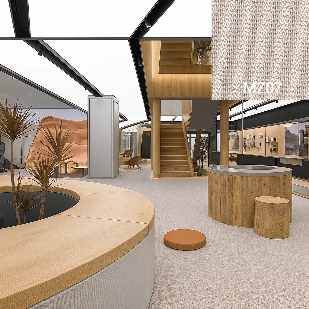 La serie Nature presenta un design a trama semplice bicolore. È morbido, elegante, caldo e mette in risalto i colori naturali. Se utilizzato all'interno, il tessuto crea un'atmosfera luminosa, fresca e tranquilla, valorizzando lo spazio con uno stile artistico unico che abbraccia e si connette con la natura.